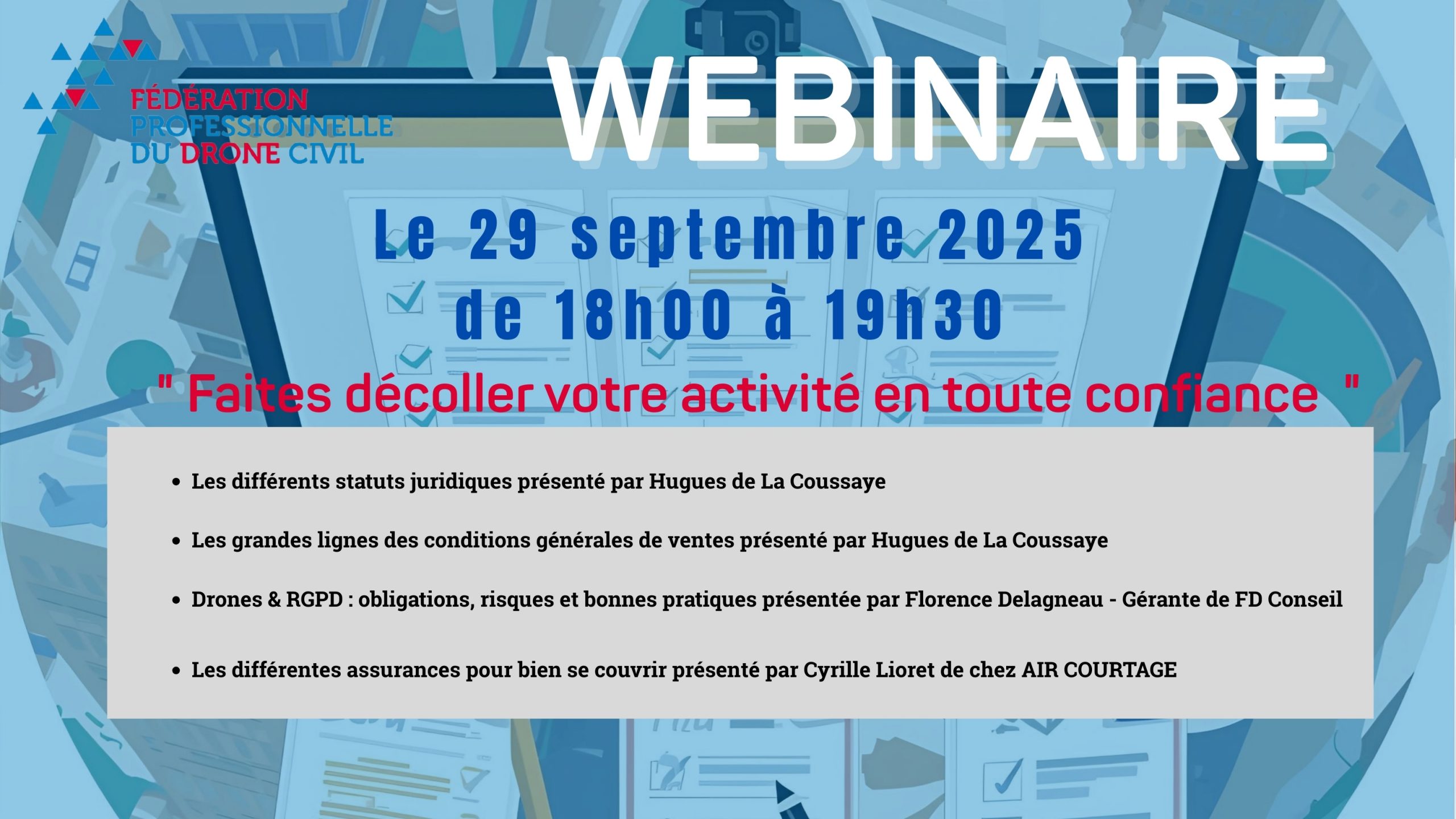 La Fédération Professionnelle du Drone Civil est heureuse de vous inviter à visionner le webinaire: “Faites décoller votre activité en